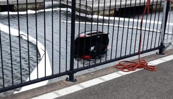 The car – which can retail for around £80,000 – is reported to have rolled into the marina after its driver parked up in a car park.