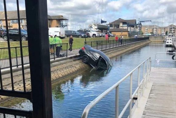 A berth holder at Port Solent Marina who saw the vehicle after the initial incident said that the car, which first crashed into the water at around 10am yesterday was parked in the berth holder’s car park prior to its accident. A crane was later used to winch it out of the deep water.