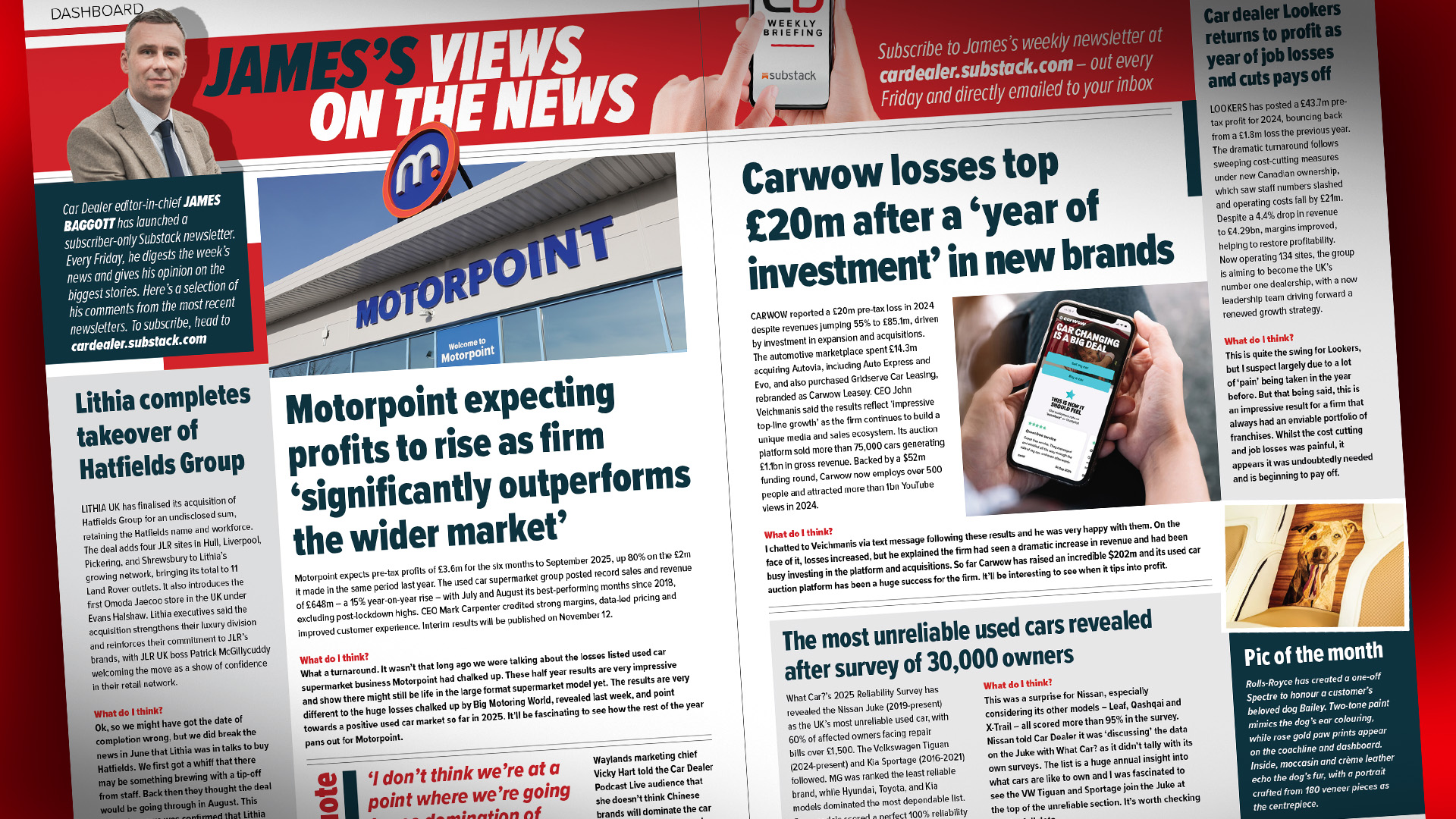 Car Dealer editor-in-chief James Baggott publishes a weekly briefing for time-poor industry executives in which he gives his thoughts on the hottest stories.