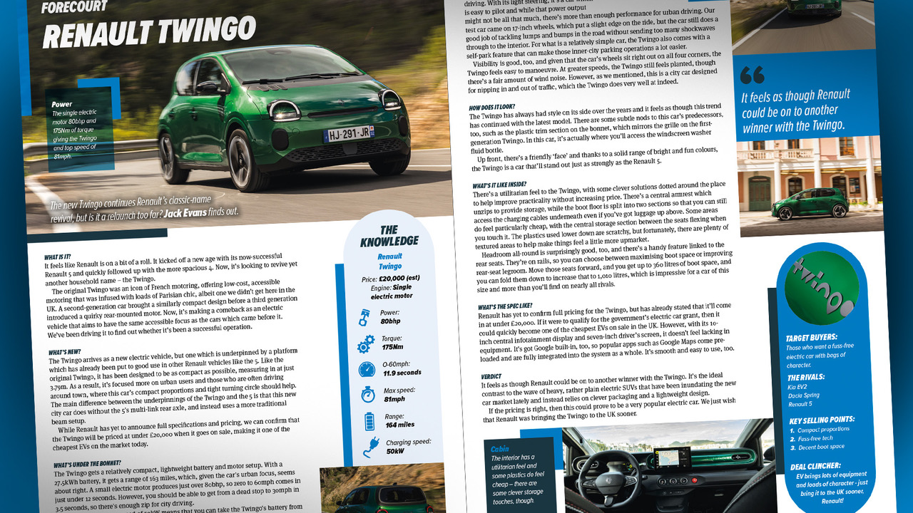Elsewhere in the magazine we drive the brand new Renault Twingo, and we have all the latest motor trade and car news.