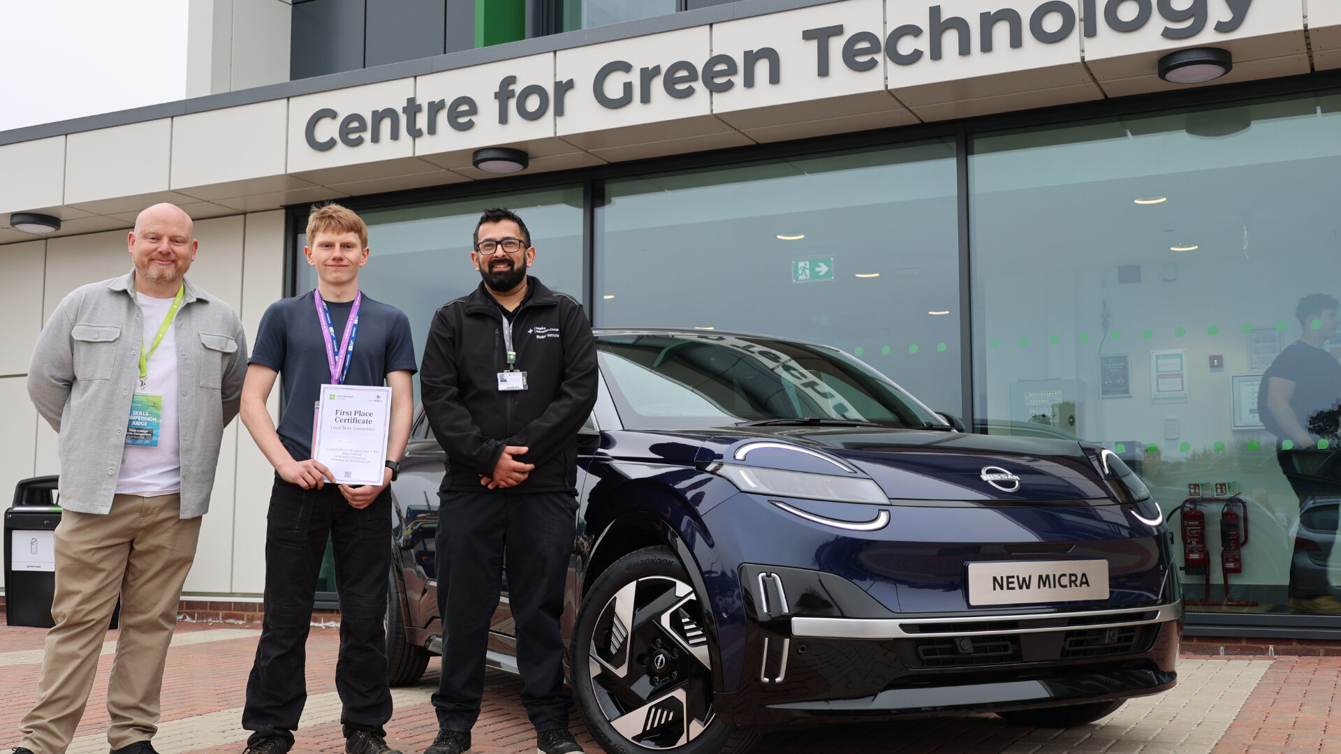 Picture, top: Competition winner Rory King, centre, with David Slevin, service manager at Smiths Nissan Peterborough, left, and Anton Maycock, lecturer in Motor Vehicle at Inspire Education Group