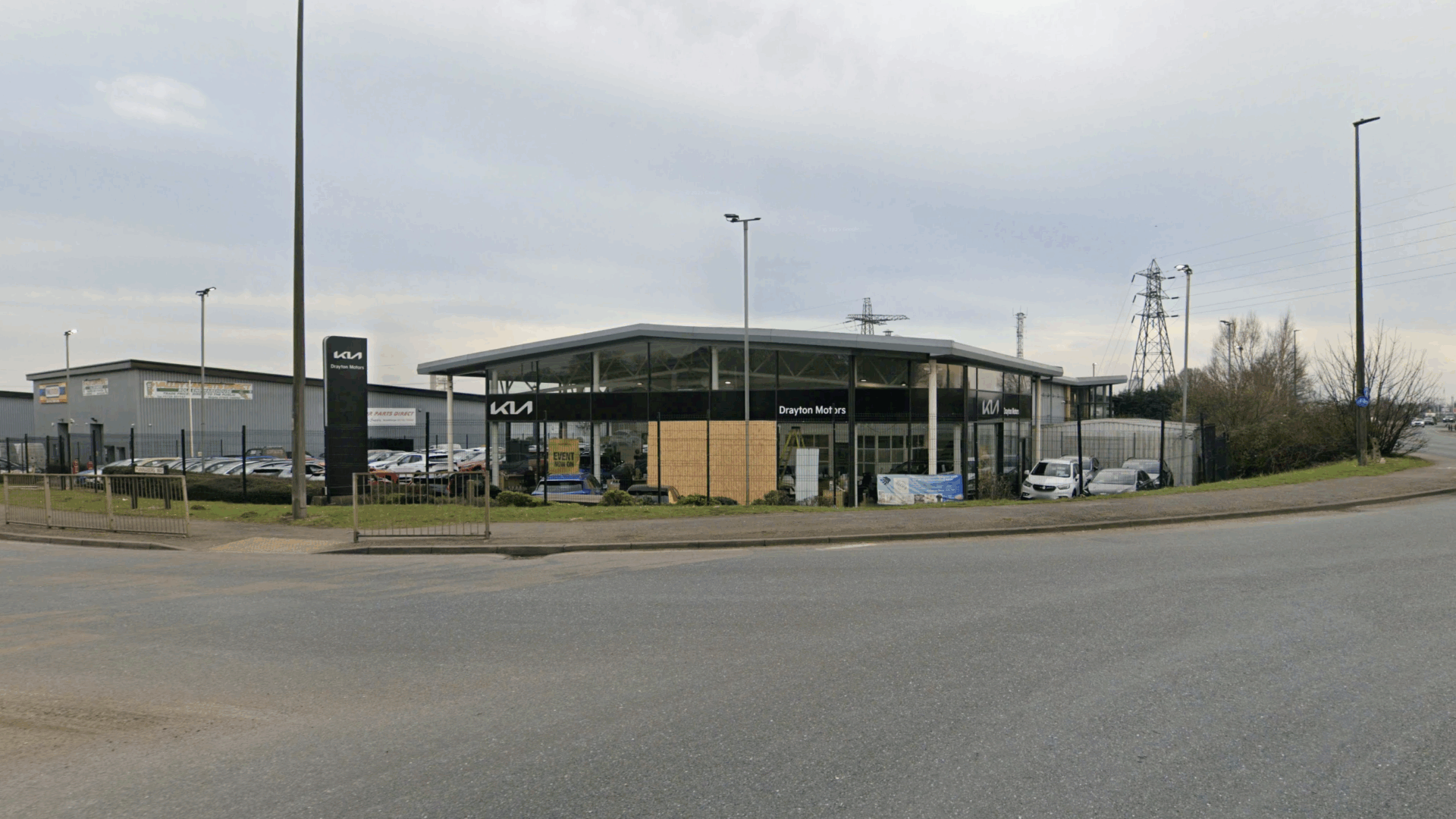 The youngster careered off the road on Mannaberg Way, causing him to smash through a car park and fencing before taking off and colliding with the plate-glass window at Drayton Motors.
