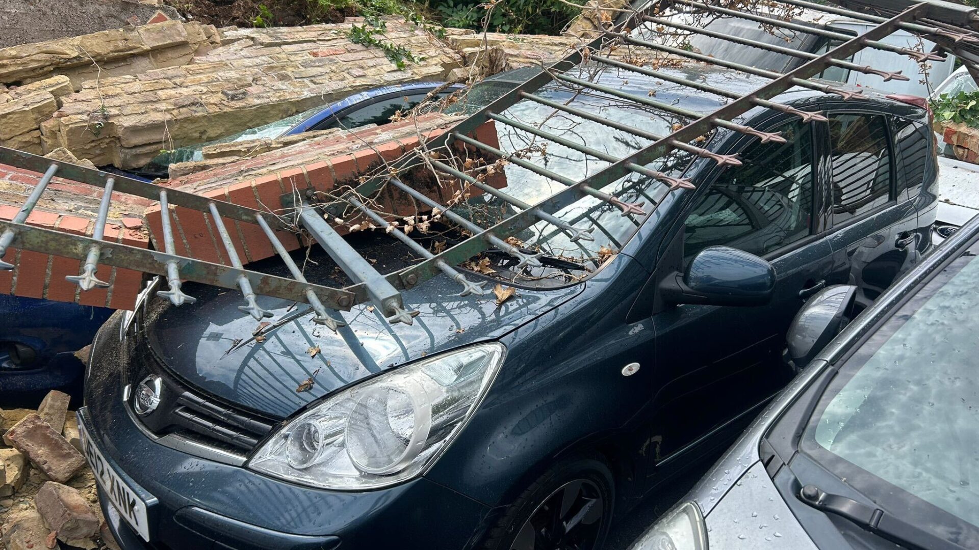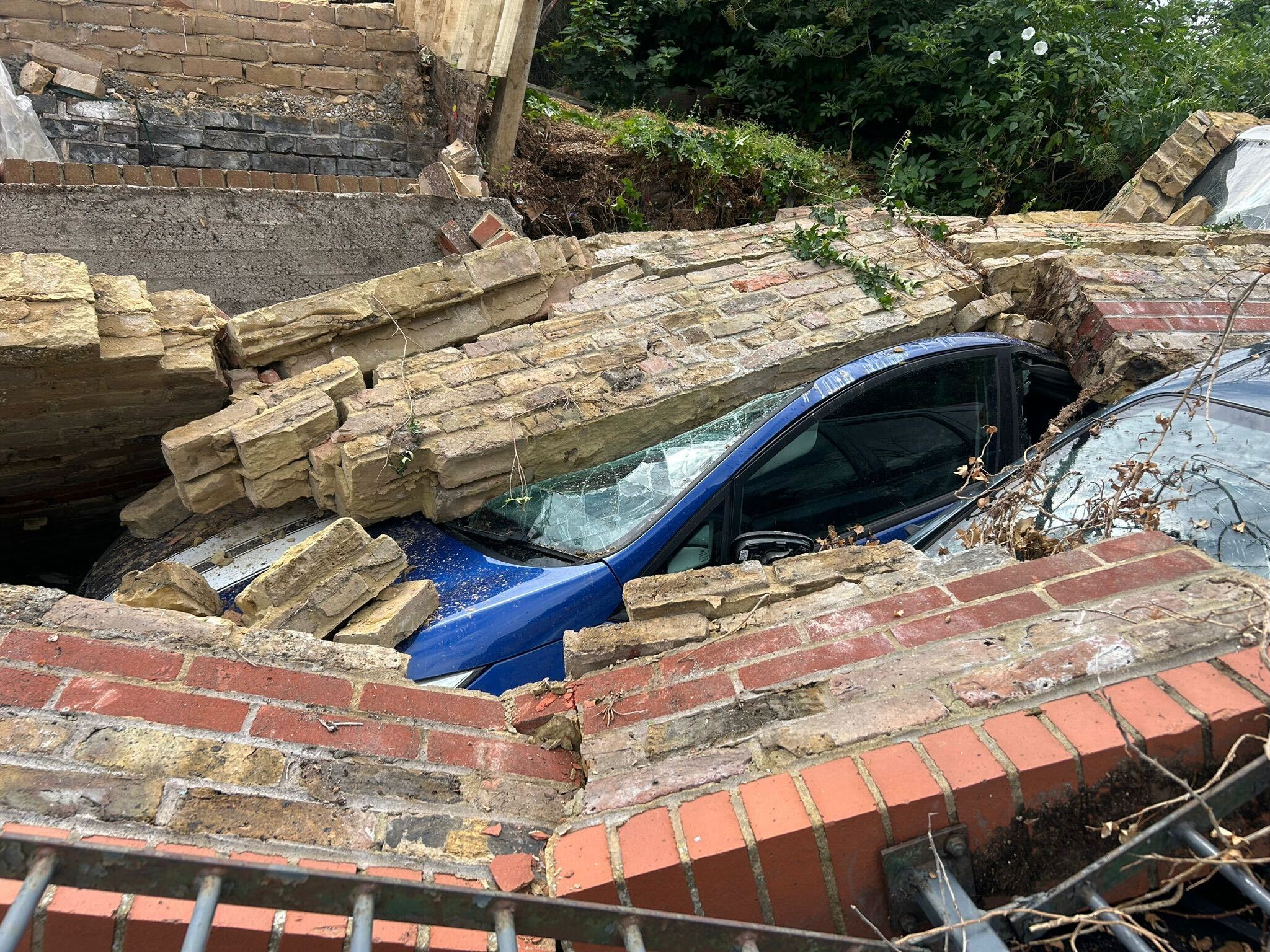 The wall which collapsed separated the dealership from a nearby branch of Lidl, which was forced to close part of its car park as a result.